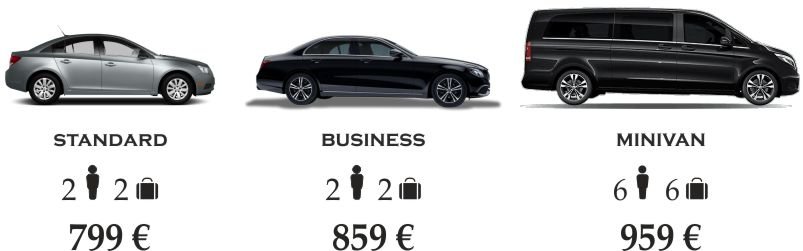 Each type of vehicle can carry as many passengers and luggage as described bellow.